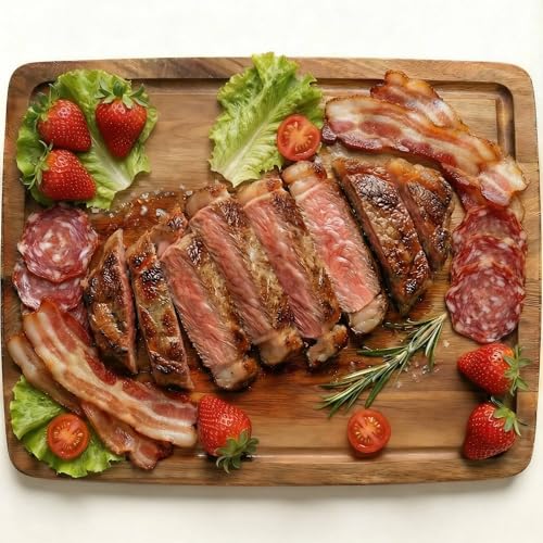 - REVERSIBLE WOODEN CUTTING BOARD– One side with juice groove can be used to cutting meat, fruit, vegetable and another side can be used as serving board or charcuterie board