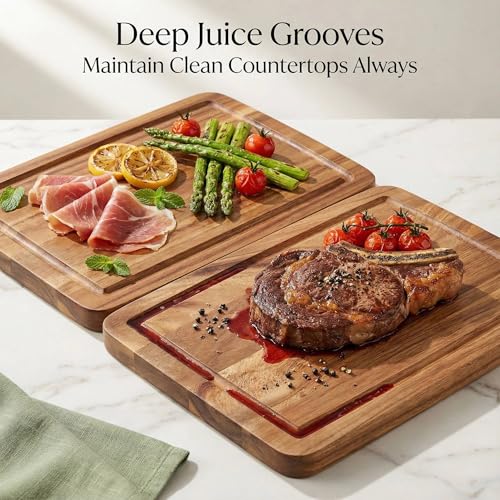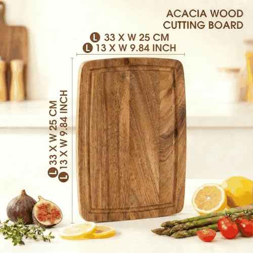 BESHOF - Acacia Wood Cutting Boards for Kitchen, Large Wooden Cutting Board with Juice Groove, Charcuterie Board, Chopping Board for Meat, Cheese, Fruits (33X25X1.5CM)