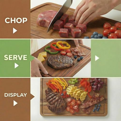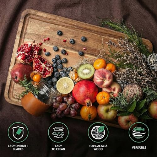 - MULTIPURPOSE CUTTING BOARD: The wood cutting board is not only beautiful, but also very functional. This acacia wood cutting board could be used as cutting, chopping, carving board, cheese board, heavy duty butcher block, serving tray, or a Charcuterie boards and decorative piece