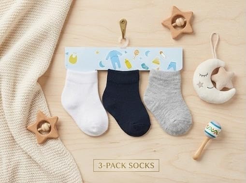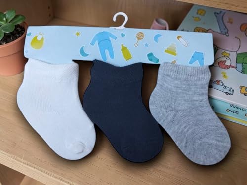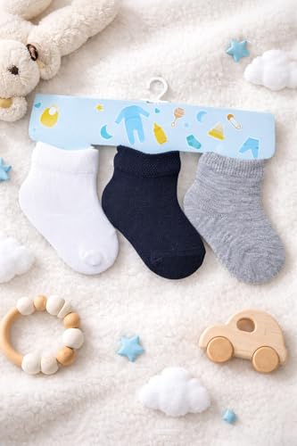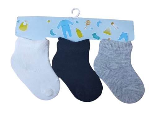 Generic - جوارب للأطفال – حديثي الولادة – من عمر شهر إلى 3 أشهر – مجموعة مميزة من 3 جوارب (أسود - رمادى - أبيض)