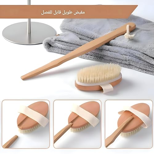 - Long detachable wooden handle ensures easy reach for full back cleansing with comfortable grip.