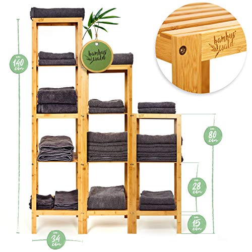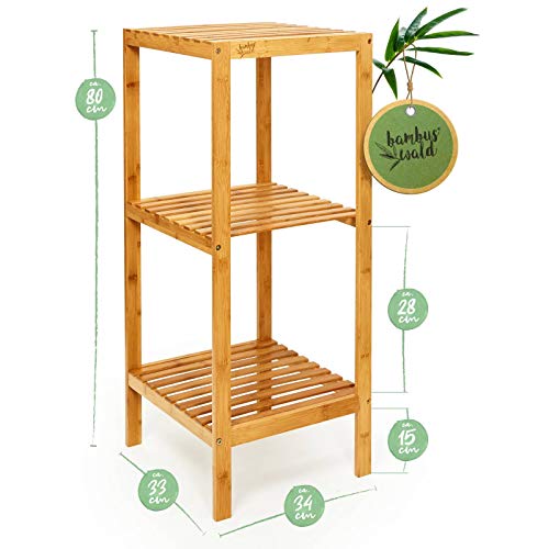 bambuswald - shelf made of 100% sustainable & stable bamboo - 3 levels - approx. 80x33x33cm | bamboo shelf bathroom shelf kitchen shelf standing shelf storage bathroom shelf household shelf