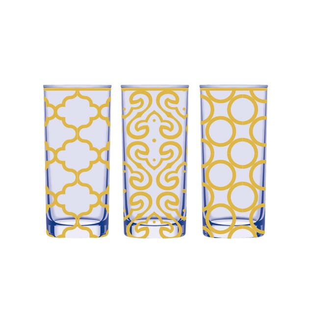 Generic - Clear Drinking Glasses Set of 6, Yellow Geometric Pattern, Tall Highball Tumblers 290ML