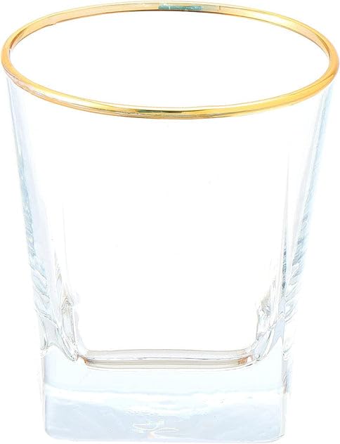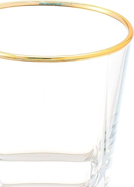 Generic - Clear Glass Tumbler with Gold Rim, Square Base, Whisky Drinking Glass SET OF 6 205ml
