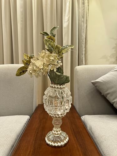 Generic - فازة زهور من الزجاج الكريستالي، تصميم زجاجي مزخرف، زهور كوبية صناعية بيضاء، قطعة مركزية لديكور المنزل