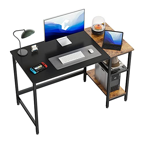 CubiCubi - CubiCubi Computer Home Office Desk, 47 Inch Small Desk Study Writing Table with Storage Shelves, Modern Simple PC Desk with Splice Board, Black Brown Finish