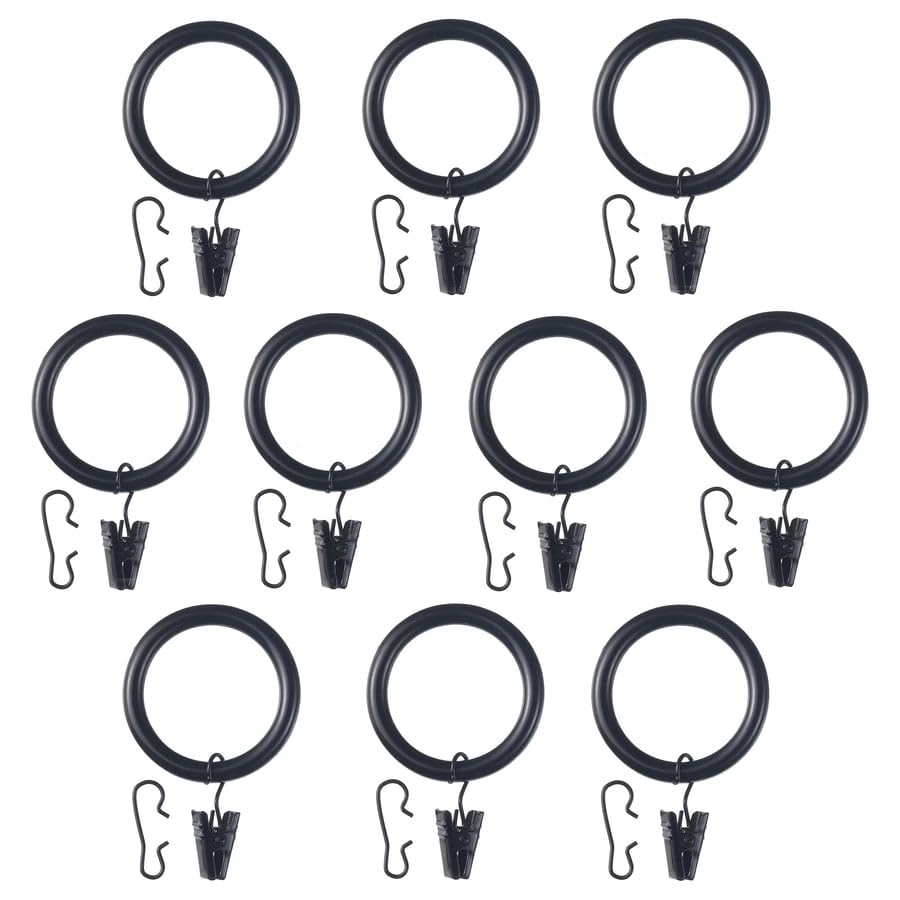 Generic - Curtain ring with clip and hook, black, 38 mm