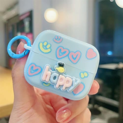 ecosystem - جراب حماية لطيفة لسماعات الأذن 3 برو، تصميم نمط ثلاثي الأبعاد مع قلوب ونجوم، غطاء علبة شحن مع حامل حلقي، ألوان وردي وأزرق وأرجواني وأخضر مينت (طبعة كلمة «Happy»)