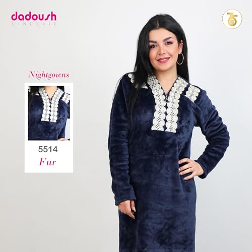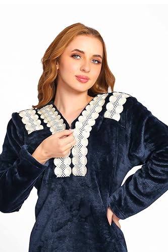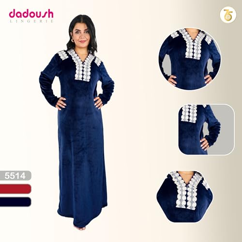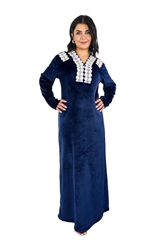 Dadoush - Dadosh Women's Velvet Long Nightgown, White Lace Embroidery - Big Size Women Nightgown - Soft and Warm Velvet Winter Nightgown