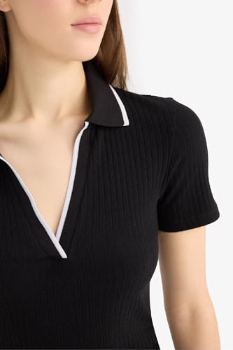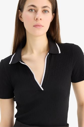 DeFacto - DeFacto Womens Casual Slim Fit Polo Neck Short Sleeve Knitted Short Sleeve Polo T-Shirt Short (pack of 1)