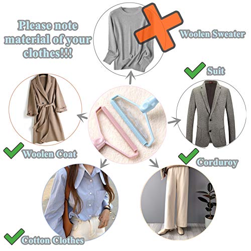 DEMIFUN - فرشاة الوبر اليدوية المحمولة القابلة لاعادة الاستخدام من ديمي فن، فرشاة احترافية لتنظيف وازالة وبر الحيوانات الاليفة من الملابس والسجاد والكنب وعند السفر (قطعتين - ازرق وبينك)