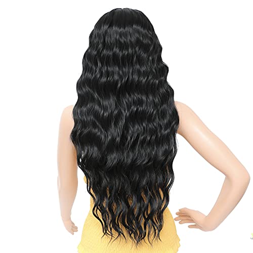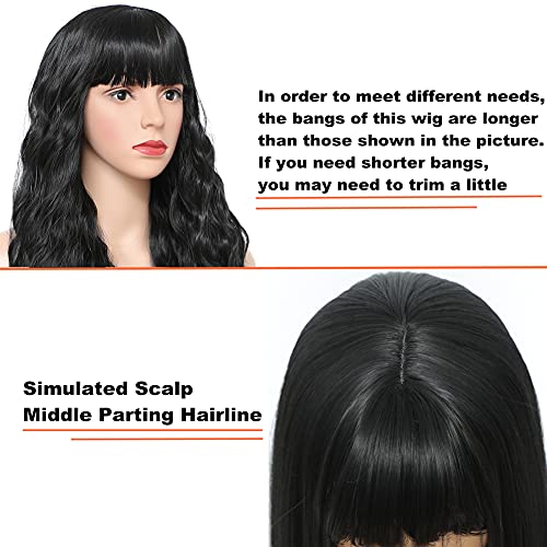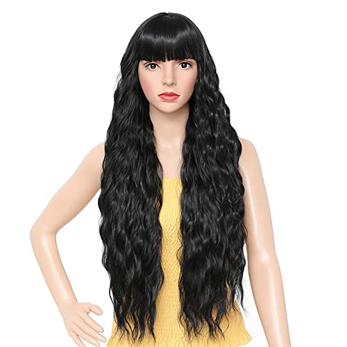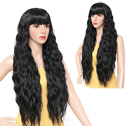 DILLARDS - DILLARDS Seelaugh Wig Black Long Curly 75 Cm With Fringe Long Water Wave Synthetic Hair With Bangs Fringes Wavy Curly For Women Synthetic Heat Resistant