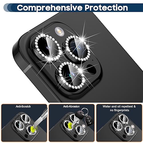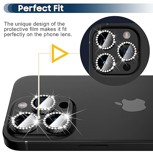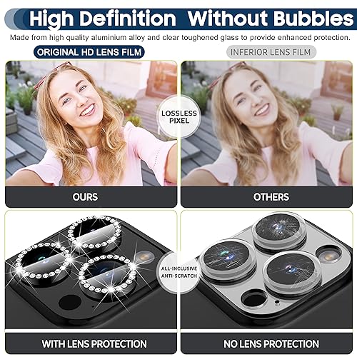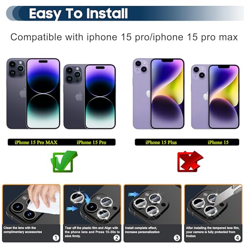 - ✨ Sparkling diamond decoration: the camera lens protective film for iPhone 15 Pro/15 Pro Max lens film is decorated with sparkling diamonds, paired with high-quality rings made of aluminium alloy steel. The exquisite diamond pattern creates charming reflections and incomparable shine and creates a super sparkling effect of sparkling diamonds in any light.