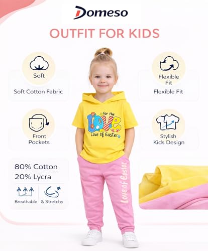 Domeso - بيجامات بنات من DOMESO بيجامة بناتي تيشيرت بغطاء رأس بأكمام قصيرة وبنطال رياضي 4 إلى 10 سنوات #501