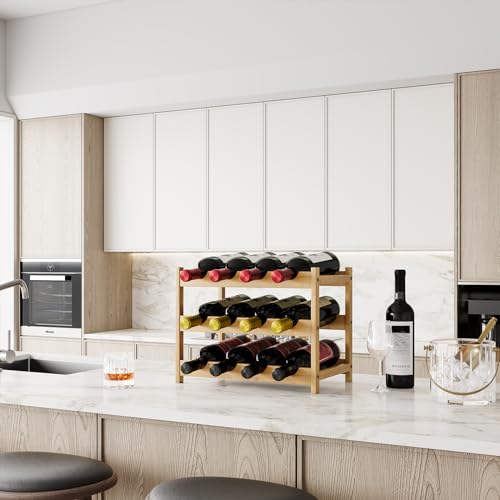 Dripex - Dripex Bamboo Wine Rack, 12 Bottles Wine Holder Storage Shelf, 3-tire Small Freestanding Bottle Wine Rack for Countertop, Kitchen, Bar, Cellar (40 x 24 x 30 cm)