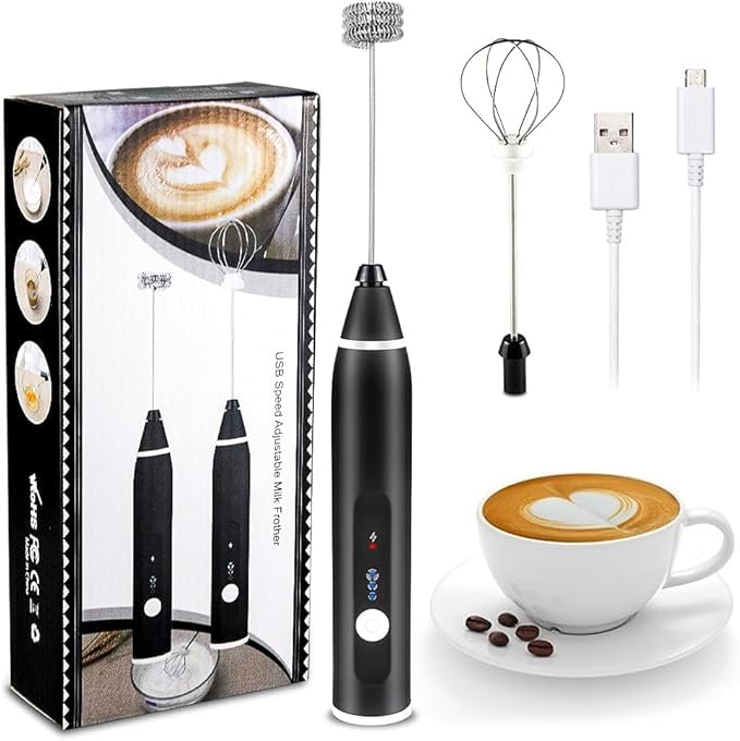 Generic - Egg beater and coffee - Portable electric milk frother, rechargeable via USB port, with 3 adjustable speeds and 2 stainless steel beaters.