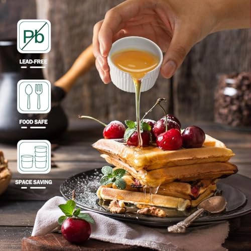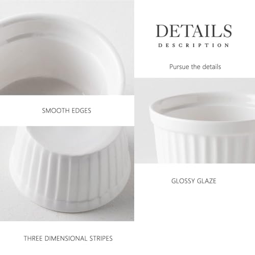 - 🍽️ Elegant Porcelain Ramekins - Crafted from food-safe glazed porcelain, these ramekins are lead-free and non-toxic. Their classic design, paired with an elegant French white finish, makes them a sophisticated addition to any dining table.