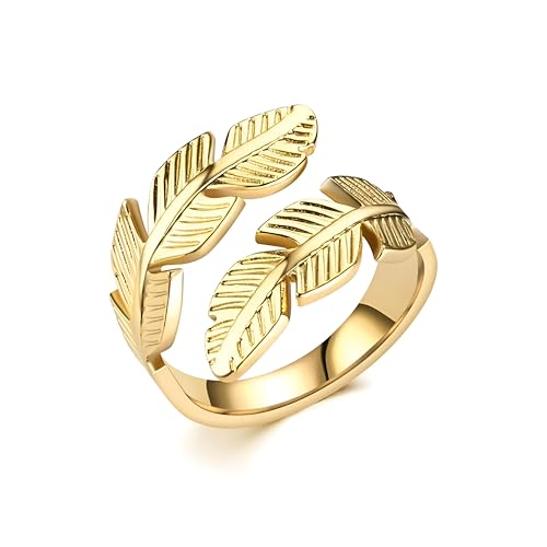 Generic - Elegant open leaf ring - made of stainless steel, featuring feather detail, perfect for women's parties, celebrations and birthday gift selection