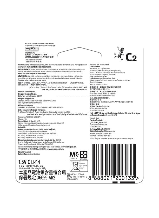 generic - Energizer Max Alkaline C Batteries – Pack of 2 Multicolour