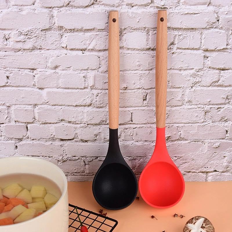Generic - Ergonomic Silicone Soup Spoon with Wooden Handle Heat Resistant - Nonstick Cooking Tool for Kitchen and Serving - Perfect for Sauce and Soup, Now at Al-Israa (2)