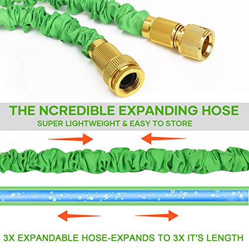 ONEHOSE - خرطوم حديقة قابل للتمدد مع فوهة متعددة الوظائف بثمانية إعدادات وخرطوم مرن مع وصلات من النحاس الصلب - الخيار الأمثل للري والغسيل، بطول 30.48 متر