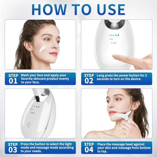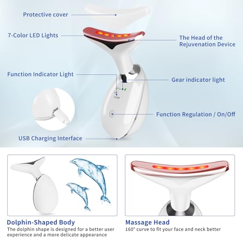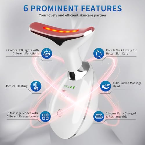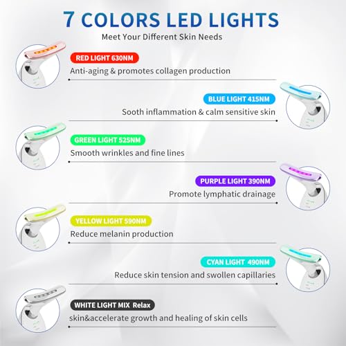 - 🌸【 7-in-1 Facial Neck Massager 】 This face massager has 7 light modes with various functions that can be used to massage the face and neck with serum, lotion, and the like in daily skincare routine. It can also be used on other body parts, tightening the sagging skin and relaxing the muscles. we assure you it is really 7 colors not as many products only 3 colors LED light