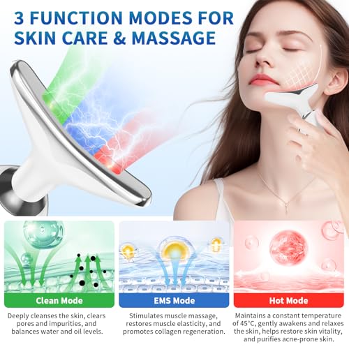 - 🌸【 3 Massage Modes 】The CLEAN Mode of the face massager can clear the pores and keep your skin clean and glowing; The second Mode of the face sculptor can relax your skin, and help your skin absorb skin care products; The HOT Mode of the face lift device can soothe the skin with heat, rejuvenating your skin