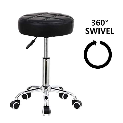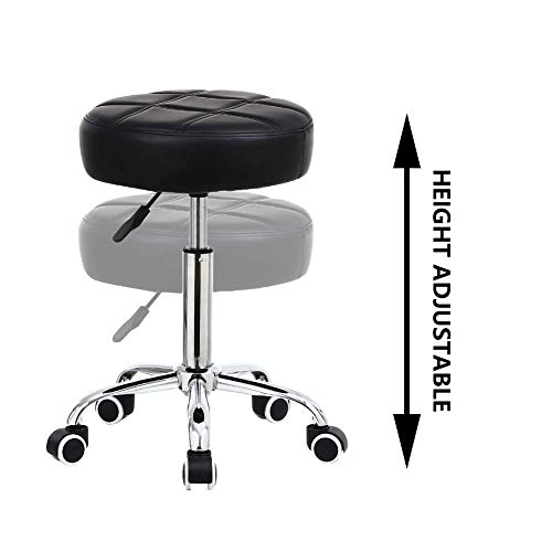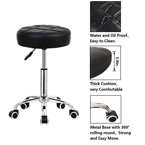 Finch Fox - Finch Fox® Round Rolling Stool Chair PU Leather Height Adjustable Shop Stool Swivel Drafting Work SPA Medical Salon Stools with Wheels Office Chair in Black Color