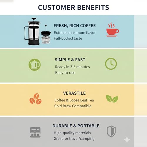 - متعدد الاستخدامات: مثالي لتحضير القهوة بطريقة الفرنش برس، الشاي، النقع البارد، ورغوة الحليب للمشروبات المنزلية