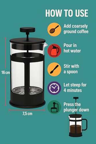Generic - فرنش برس لتحضير القهوة، زجاج مقاوم للحرارة، سعة 350 مل، فلتر ستانلس متعدد الطبقات، مناسب للقهوة والشاي، آمن للغسالة