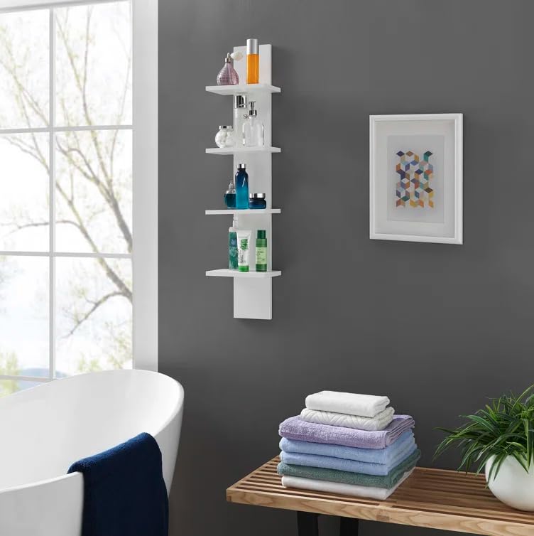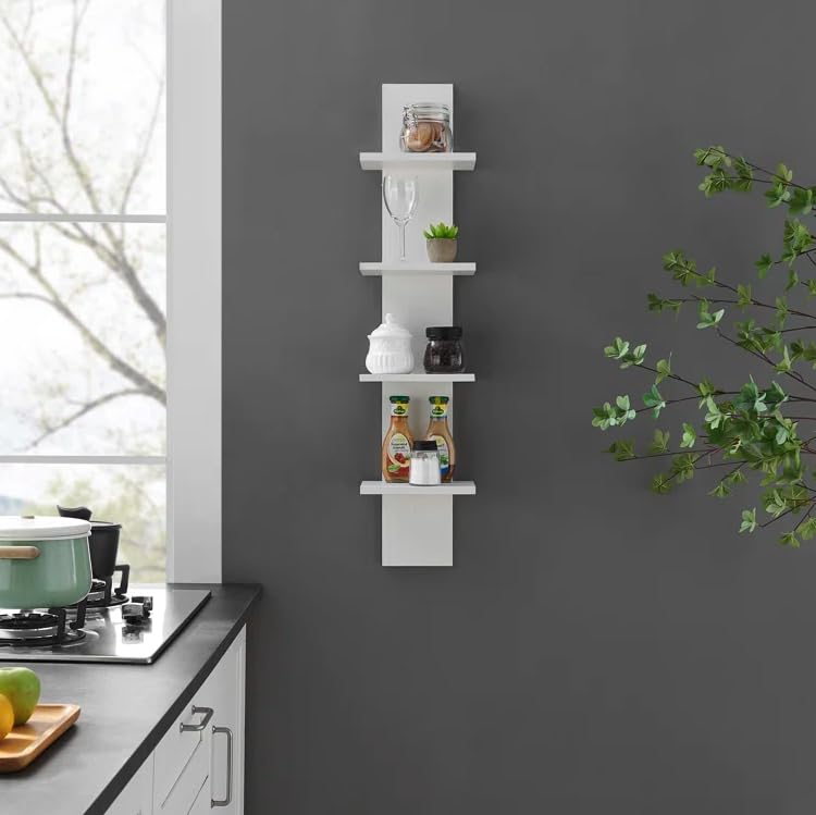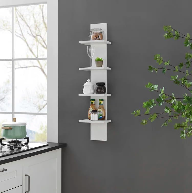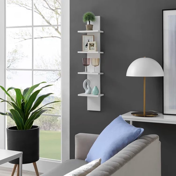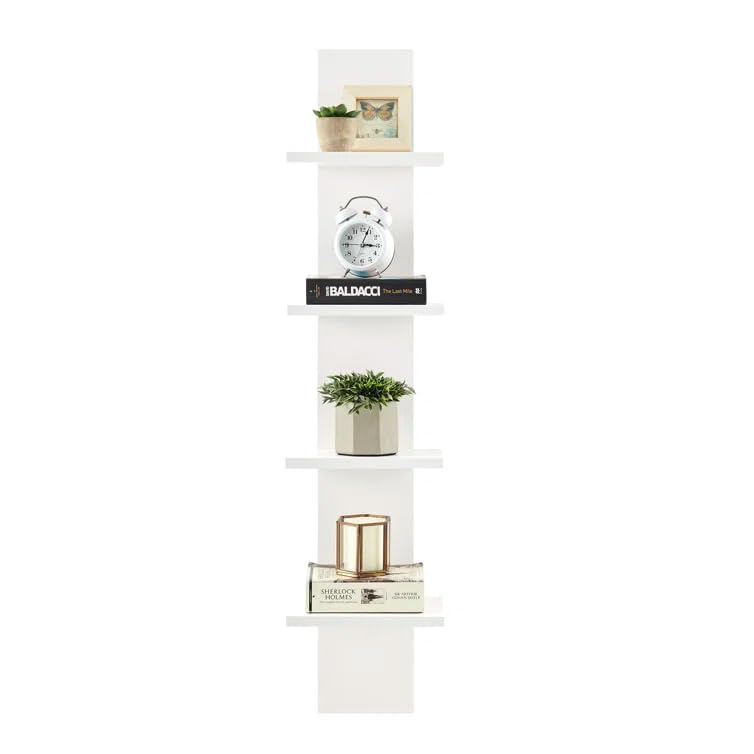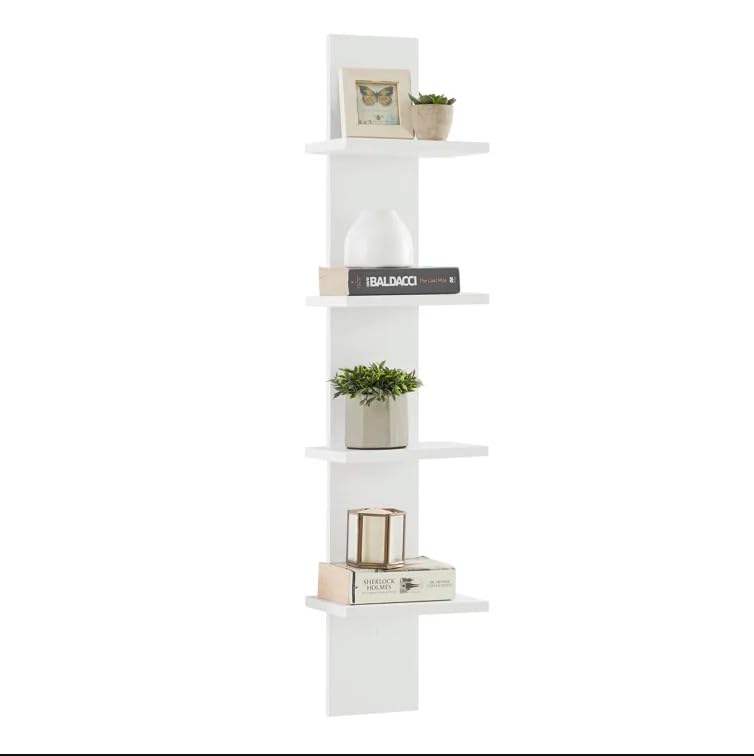 FURNEASER - FURNEASER Calsy Multipurpose Wall Display Shelf for Living Room Hanging Corner Rack Floating Bookshelf & Shelf Organizer Stand (White)