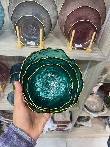 Generic - جيني طقم اوعية تقديم زجاجية من 3 قطع (اخضر زمردي) بحواف ذهبية