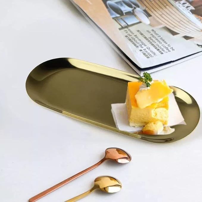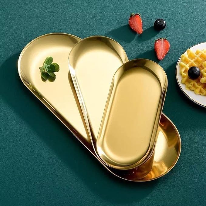 Generic - طقم أطباق تقديم طعام بيضاوية مطلية بلون ذهبي ومصنوعة من الفولاذ المقاوم للصدأ، أطباق عشاء، صينية كيك، أطباق ستيك وحلوى وسوشي، لون ذهبي، 3 أحجام، طقم من 3 قطع