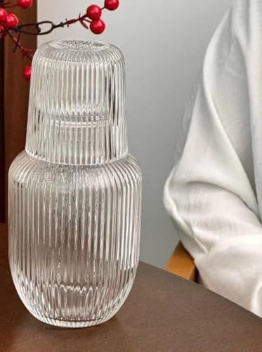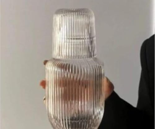 Generic - جيني زجاجة عصير زجاجية مضلعة مع مجموعة اكواب، زجاجة 1.5 لتر وكوب 250 مل، ادوات شرب زجاجية شفافة .A2
