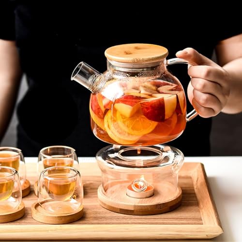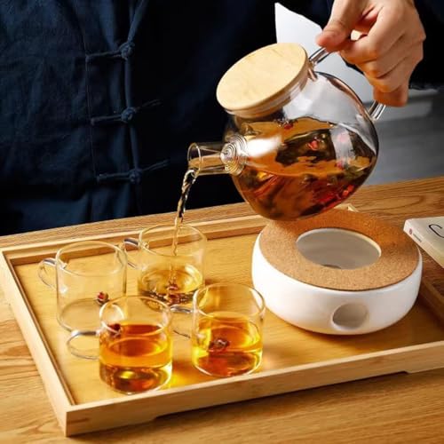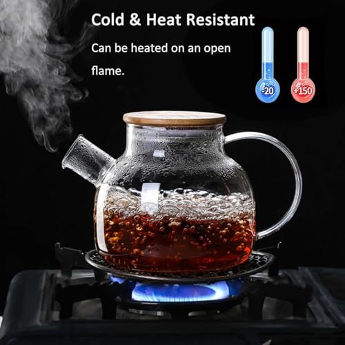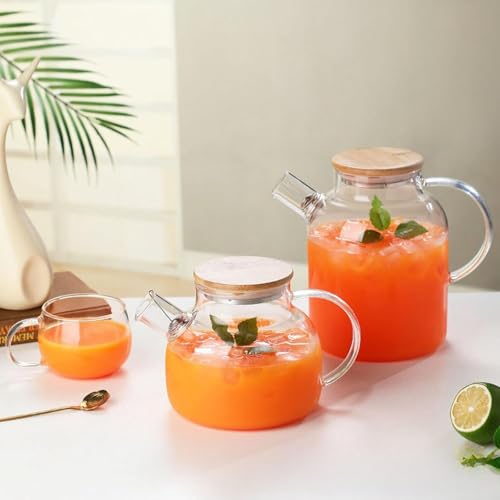 - Borosilicate Glass Teapot with Bamboo Lid: Crafted from heat-resistant borosilicate glass, this teapot ensures durability and clarity. The natural bamboo lid with a silicone ring makes it leak-proof and prevents the lid from falling and adds an aesthetics