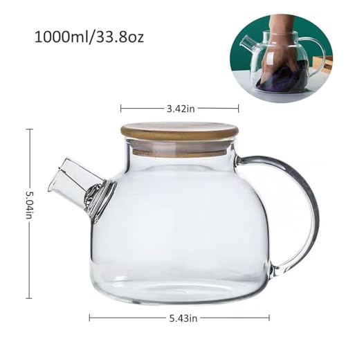 - 1000ml Glass Teapot: Perfect for Sharing With a spacious 1000ml (34 oz) capacity, this teapot is ideal for serving 3-4 cups of tea. Enjoy afternoon tea with friends or family