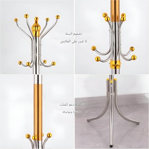 - مصنوع من فولاذ مقاوم للصدأ بريميوم، يتميز رف المعاطف هذا بإطار فضي لامع لا يضيف لمسة من الأناقة إلى ديكورك فحسب، بل يضمن أيضًا المتانة وطول العمر. يمكن للمادة المتينة أن تتحمل الاستخدام اليومي، مما يجعلها خيارًا موثوقًا به للمنازل المليئة بالحركة. تصميمها القوي يعني أنه يمكنك الوثوق بها لحمل أغراضك بأمان بدون أي خطر من الانحناء أو الكسر.