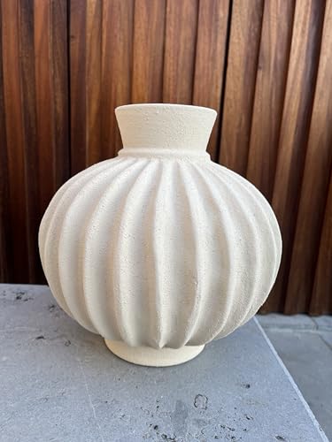 - Unique Design: This beige pottery vase features a striking striped pattern, adding visual interest to any space.