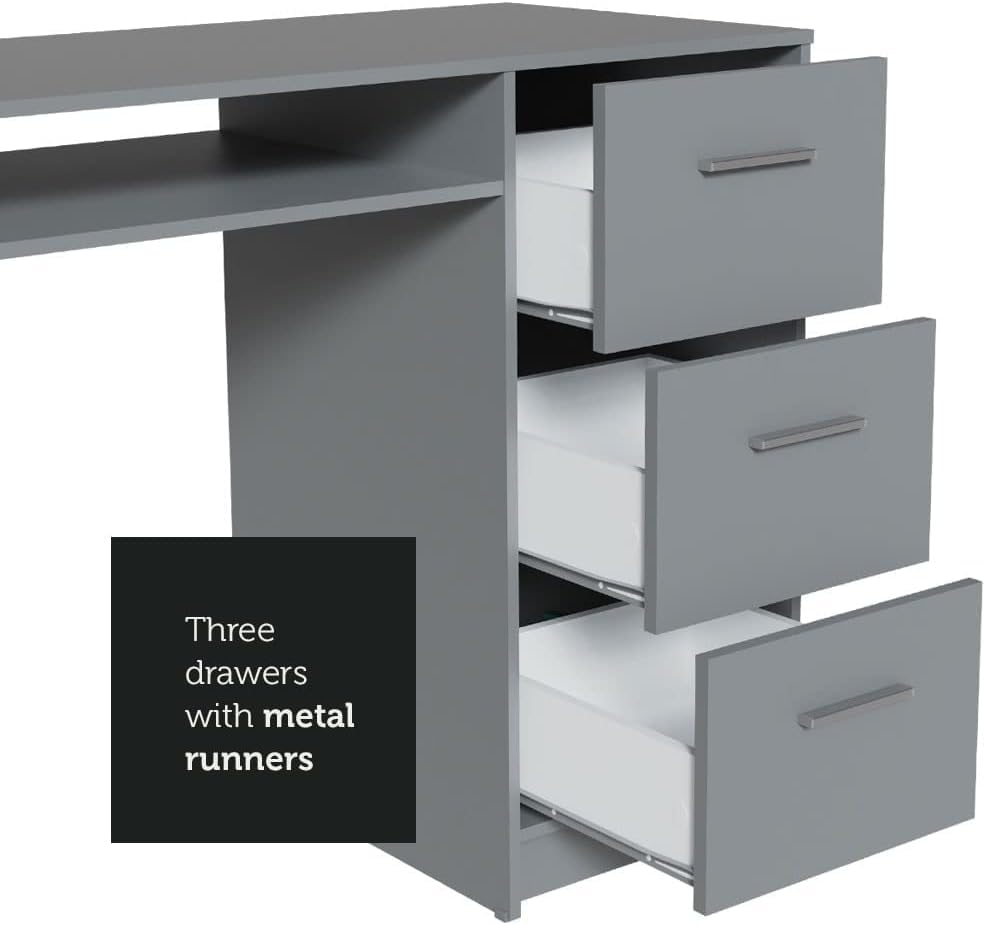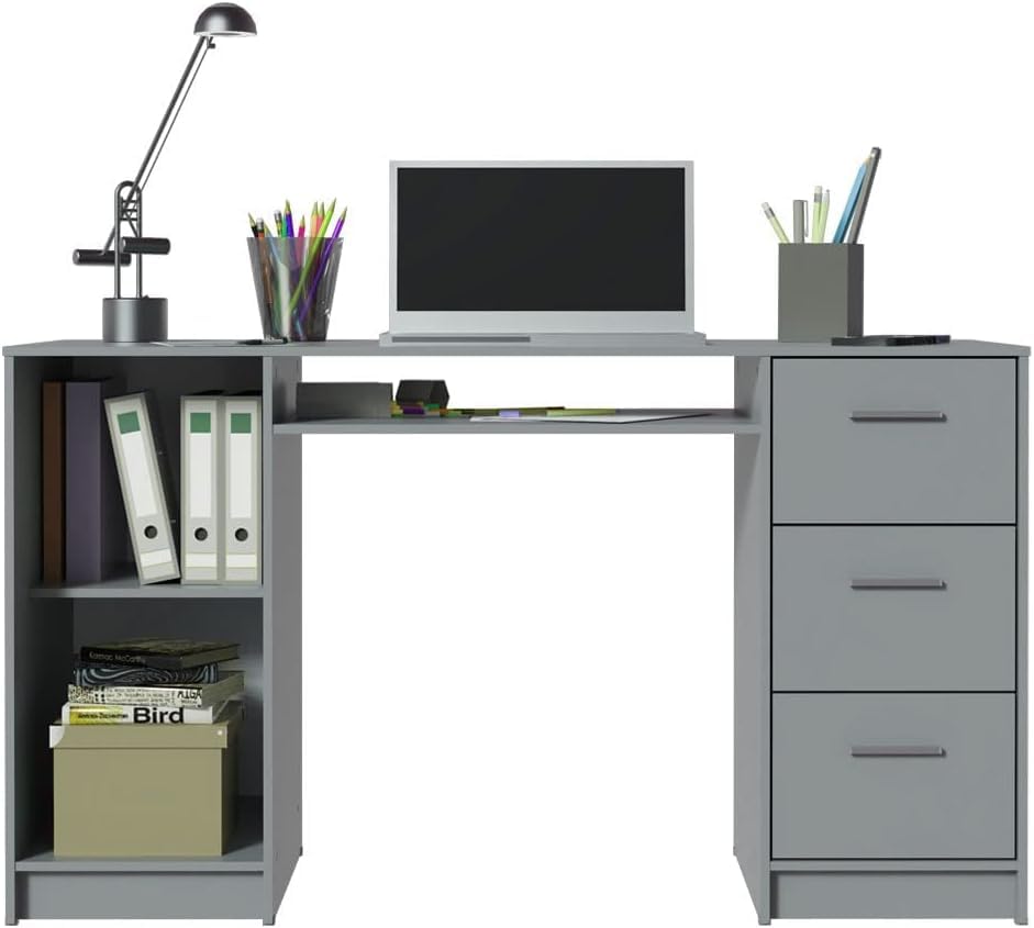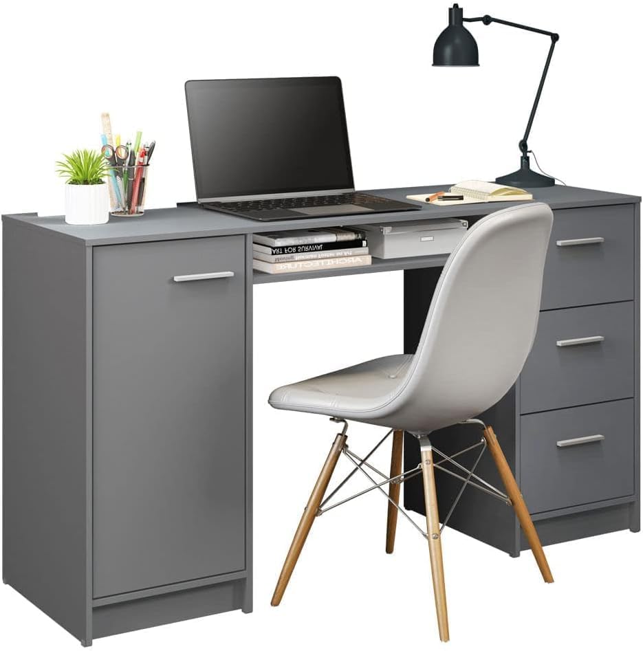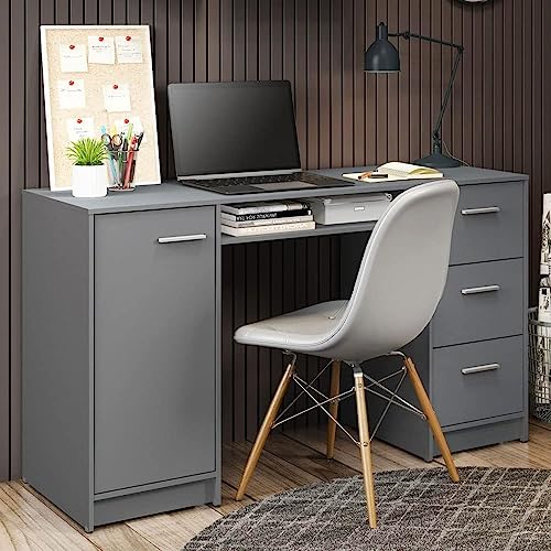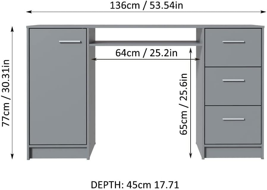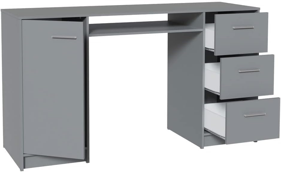 Generic - Home Office Computer Writing Desk with 3 Drawers, 1 Door and 1 Storage Shelf, Plenty of Space, Wood, 45 D x 136 W x 77 H cm (grey)