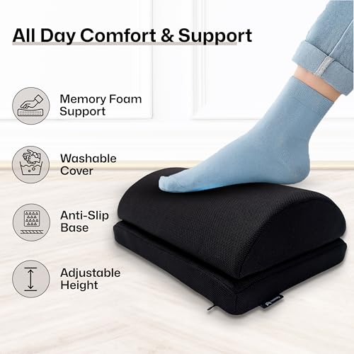 - Breathable Mesh Fabric & Machine Washable: The footrest features breathable mesh material to keep your feet cool and dry, preventing sweat and discomfort—unlike traditional plastic footrests. For added convenience, the cover is machine washable, making it easy to keep clean and fresh. Enjoy all-day comfort with a footrest that breathes with you. Perfect for pairing with an ergonomic office chair with foot stool or gaming chair with footrest for added comfort.