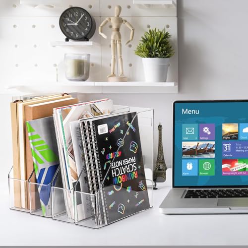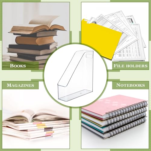 JAZZEEL - مجموعة من 3 حوامل مجلات شفافة ورفوف لتنظيم الملفات من جازيل، حل عمودي لتخزين المستندات مع مقبض - عبوة من 3 قطع - شفاف