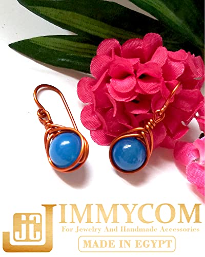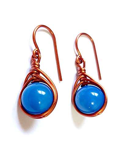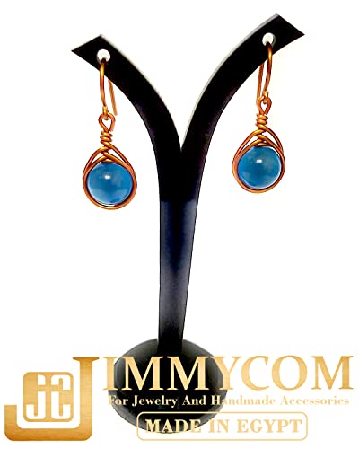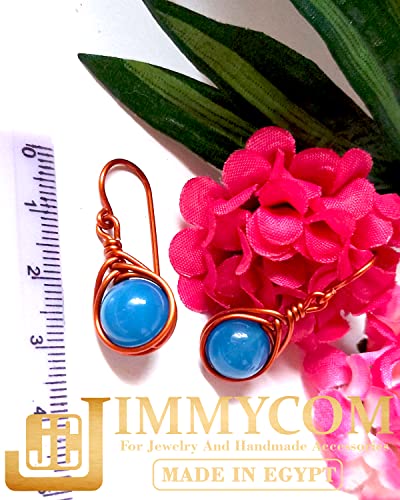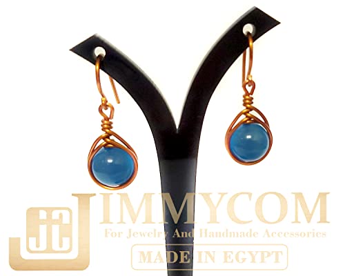 (JC) jimmycom - Copper and Stones Short Dangle Drop Earrings,Women earrings, earrings for women,earrings,earrings set unique,accessories,plated copper earrings (Blue Brazilian agate)