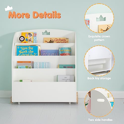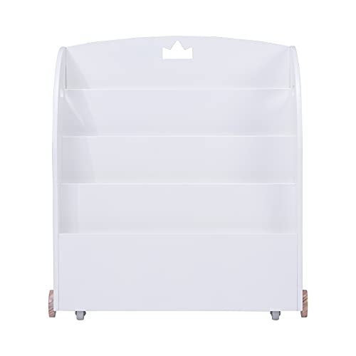 - 【ENCOURAGE READING】- The art of reading is being lost, and a kid's bookshelf can create a fun environment to help building reading habits. This bookshelf is pure white with beautiful Crown Hollow on the back and 4 Wheels Painted Crown. These conform to the children's psychology, and easily attract children's attention and interests. When you put a variety of books on it, you'll see baby would notice them with happy laughing, and then they begin reading