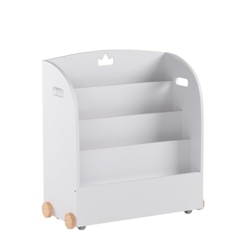 - 【PERFECT COLLOCATION】 - The Nordic Style Child Book Shelf Case has 4 Real wheels hidden behind Wooden decorative Wheels. The Classic White & Nature Color makes it a perfect collocation with any decorative style. The Arc design makes it easy to put in or take out books.