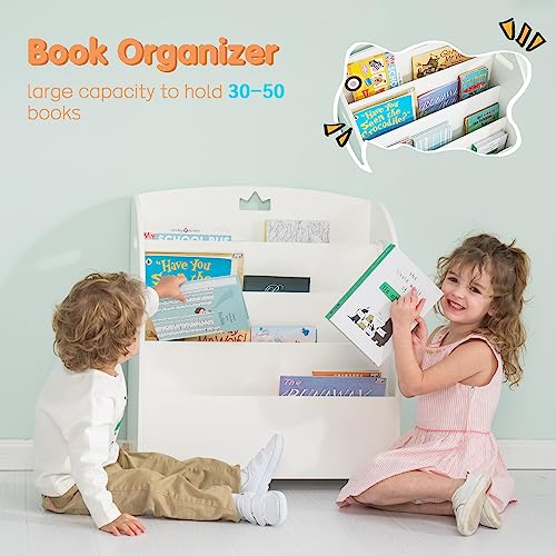 - 【RIGHT SIZE】- The bookshelf fits perfectly in the child's height. It’s easy for children to take or return books wherever they sit or stand. It is an EXCLUSIVE BOOKSHELF designed for children! After reading, parents can guide kids to put books back on the bookshelf. Parents can keep the interior clean, and the children will learn the ability to organize things. Also, It can be well used as cute small bookshelf or color book storage