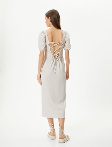KOTON - فستان قصير مزين برباط ونقشة زهور وأكمام منفوخة حريمي من كوتون