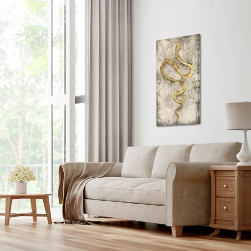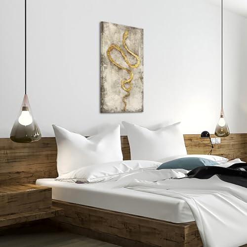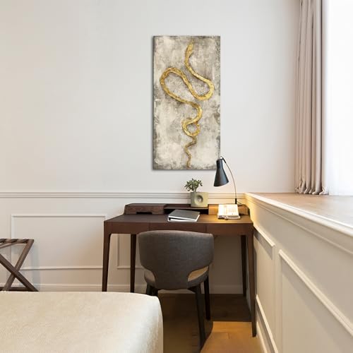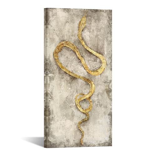 Kreative Arts - كرياتيف ارتس لوحة فنية جدارية من القماش التجريدي العمودي، لوحة زيتية لامعة ورقائق ذهبية مزخرفة بزخارف ثعبان سماوية، عمل فني 20 × 40 بوصة لغرفة المعيشة