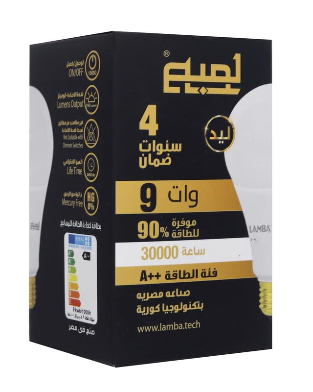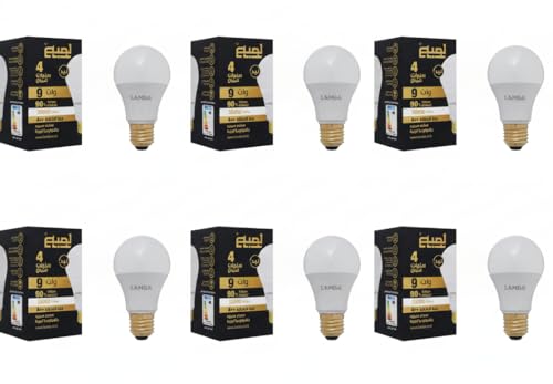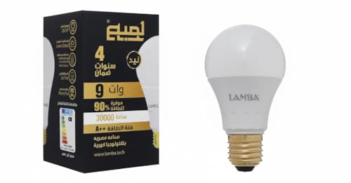 LAMBA - مجموعة لمبات ليد 9 وات A60 من LAMBAموفرة للطاقة بنسبة 90%، عمر افتراضي 30,000 ساعة، كفاءة A++، بضوء ساطع ( 6 قطع) ، ابيض