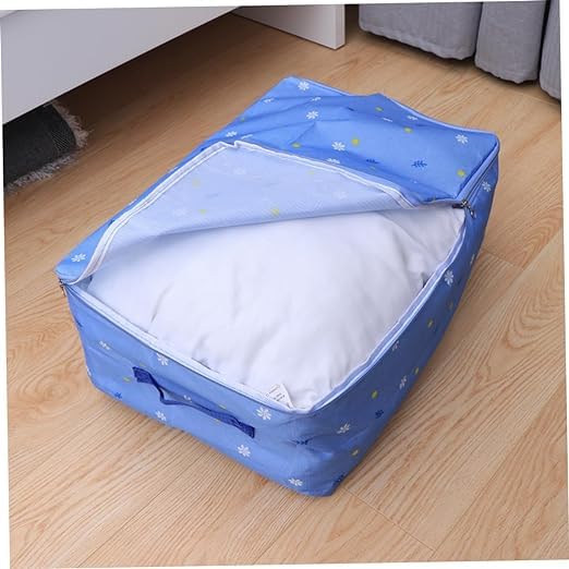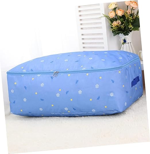 Generic - Large Portable Waterproof Storage Bag with Zippers, Heavy Duty Thick Oxford Cloth Organizer Bag Perfect for Sleeping, Comforters, Blankets, Festival Decorations (68x49x23cm) (Floral (Baby Blue))