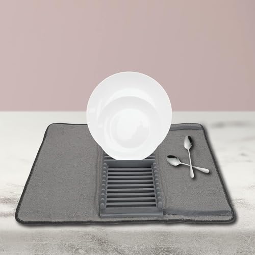 LDG WARE - Rack and Microfiber Dish Drying Mat, Removable Dish Rack Tray, Dish Rack & Drying Mat for Kitchen Countertop, Sink - Drain and Dry Wine Glasses, Bowls and Dishes
